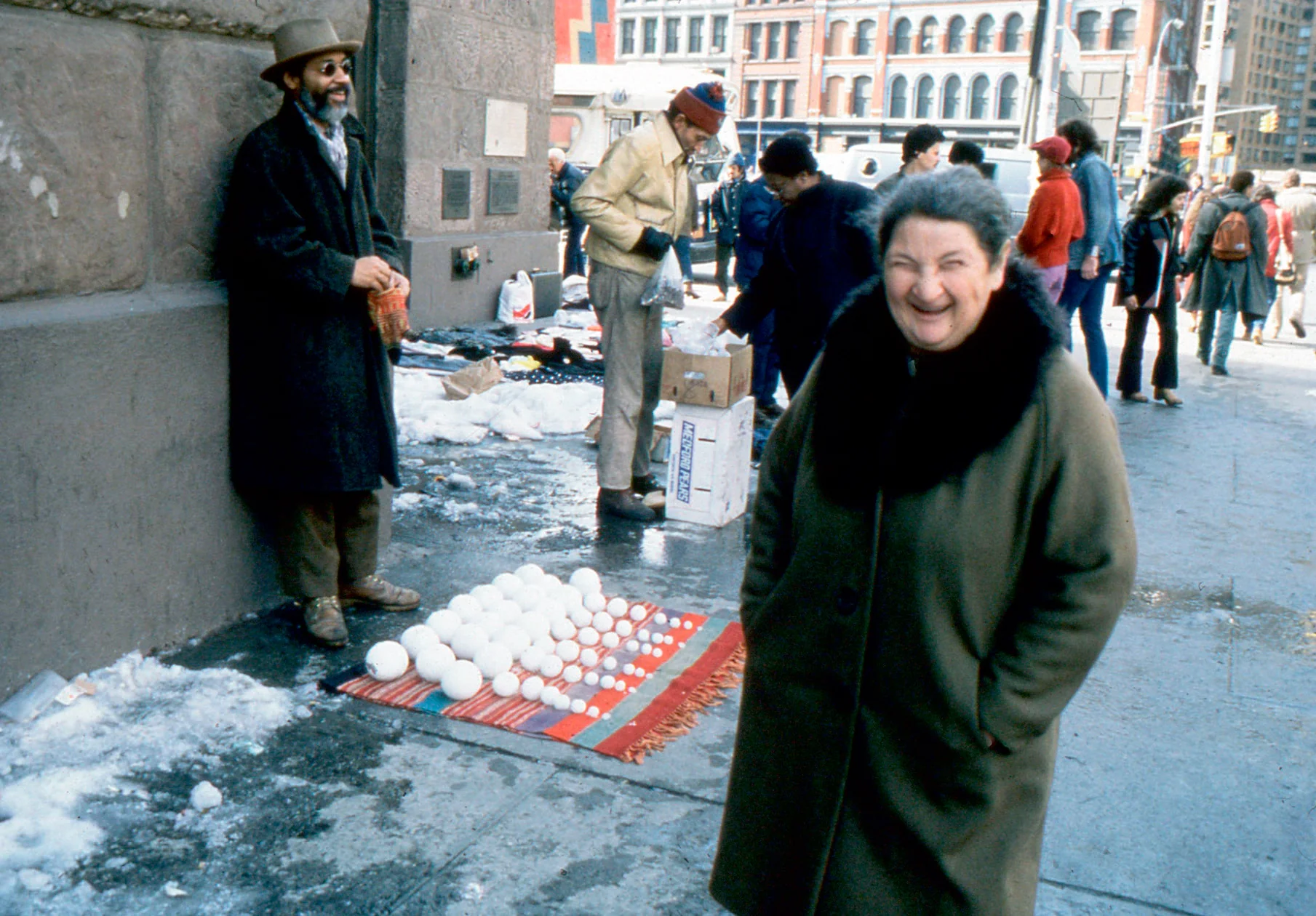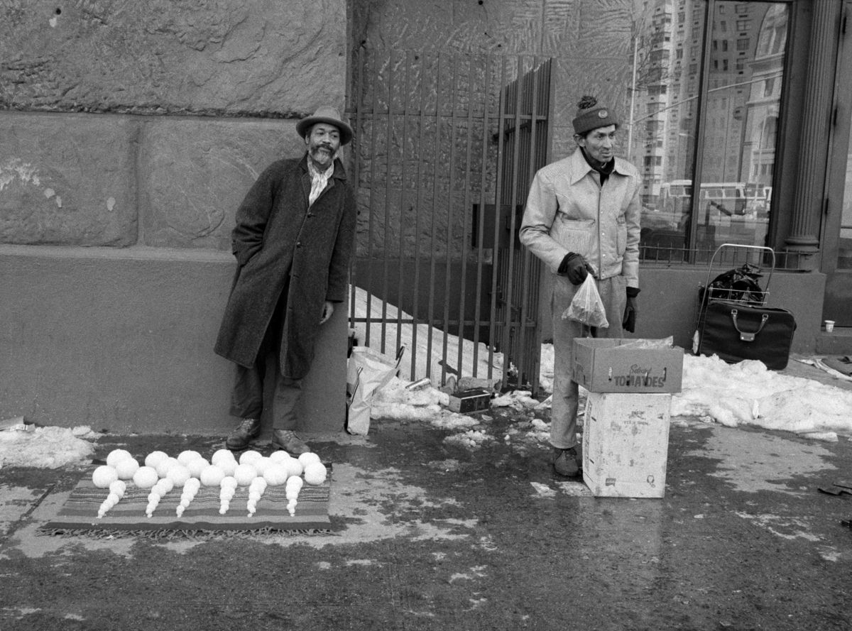 David Hammons, 1983 Yılı Şubat Ayında New York Cooper Square’de Bir Örtü Serip Farklı Boyutlarda Kar Topları Dizdi ve Her Birini 1 Dolara Sattı